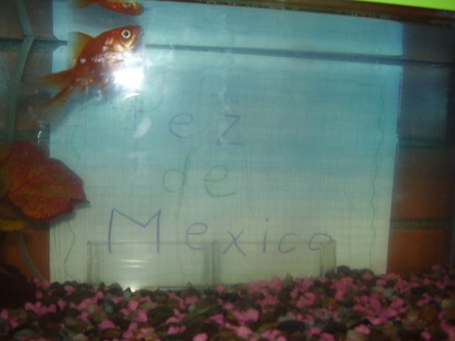 La foto es del pez que tenemos,  al cual mi hija mayor le decoró la pecera recordándole su nacionalidad.